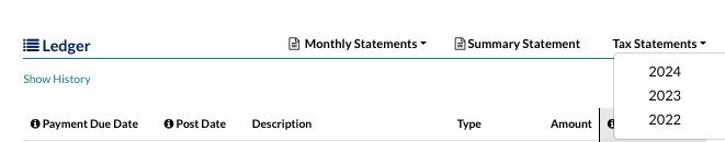 - TAX Reports: Access documents/annual summaries in Finalsite. From the Billing Management tab, click Tax Statements.